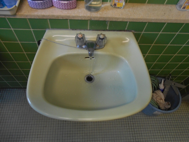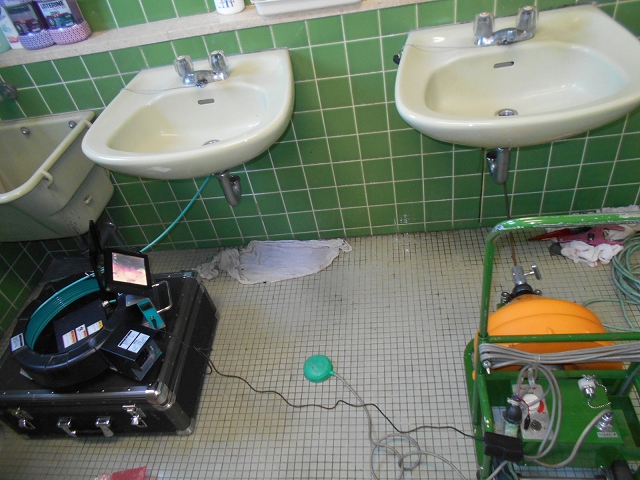 「洗面台の水が流れない」という連絡があり、お伺いしました。